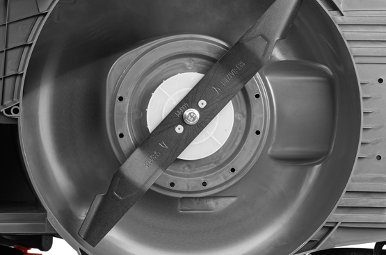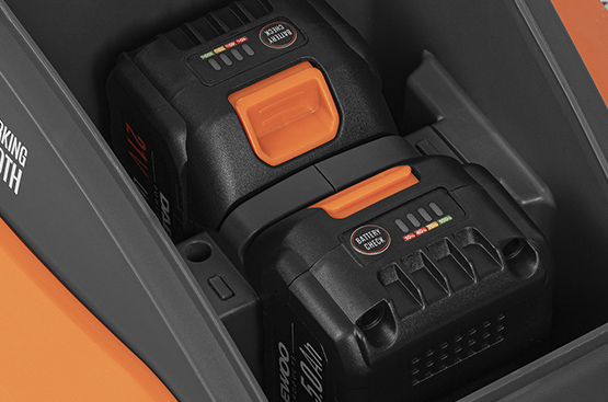 Две мощных литий-ионных аккумуляторных батареи высокой емкости 5Ач обеспечивает долгую работу газонокосилки, позволяя обработать большой по площади газон на одном заряде.